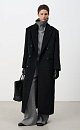 Double-breasted wool coat. Relaxed silhouette with lapel collar, side pockets, logo at the back and button closure. Adjustable tied self belt. Lined.