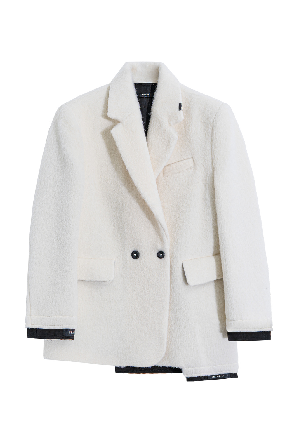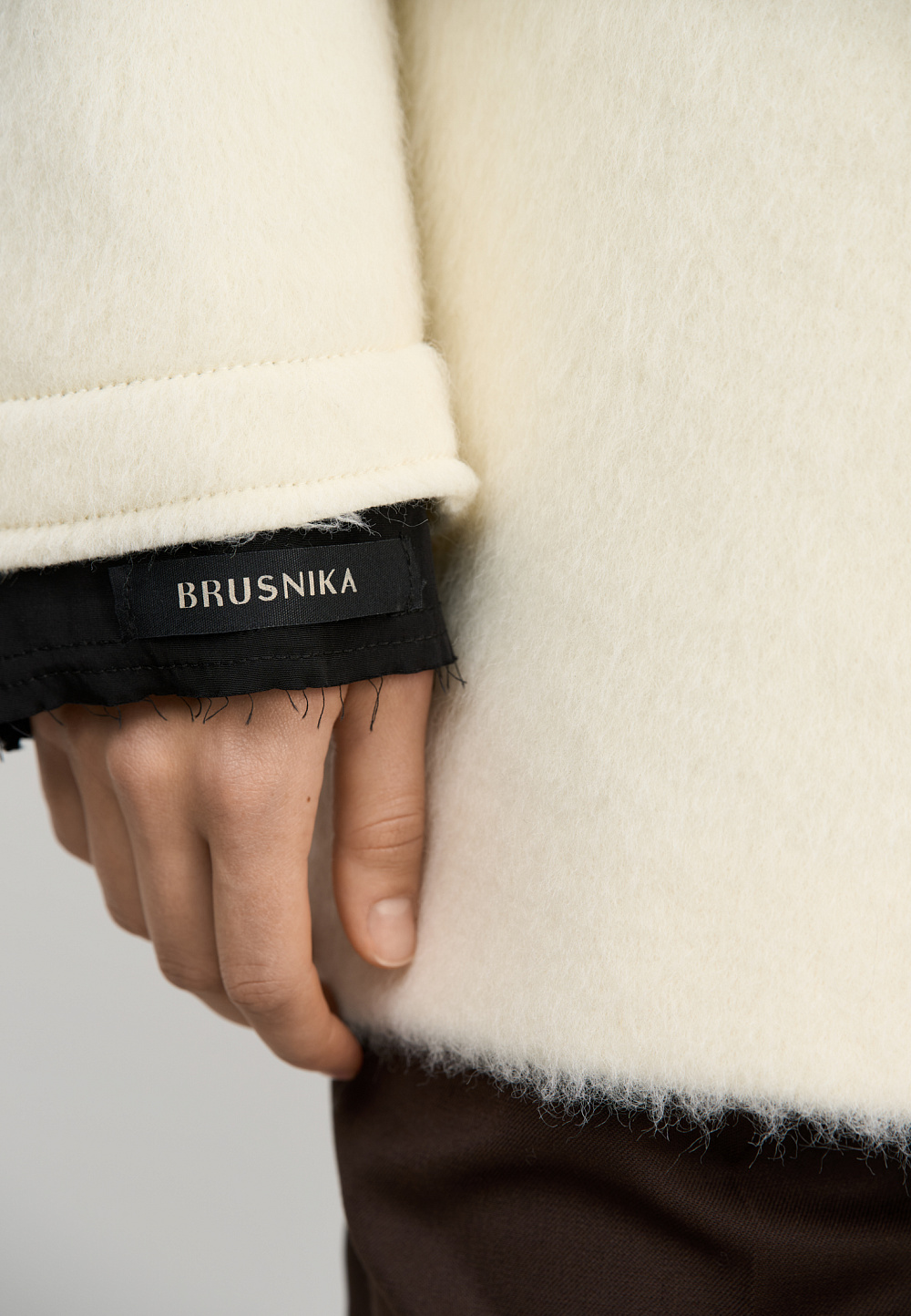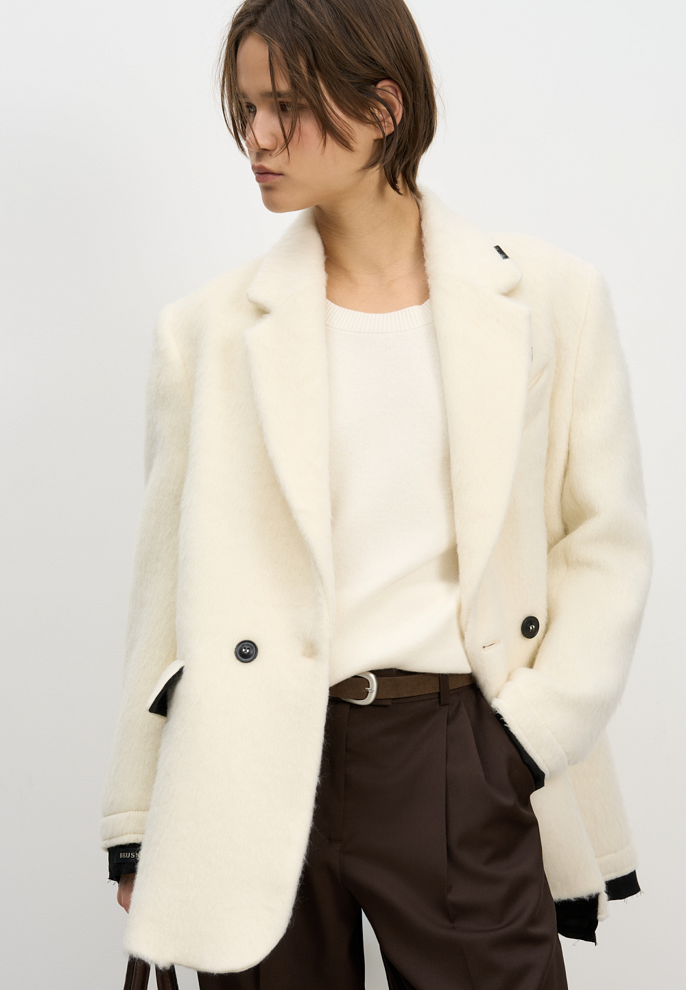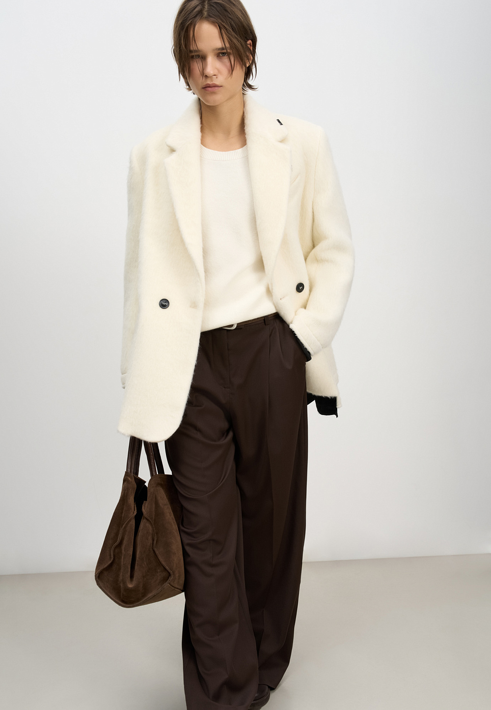 Single-breasted wool jacket. Loose silhouette with front pockets. Lined.