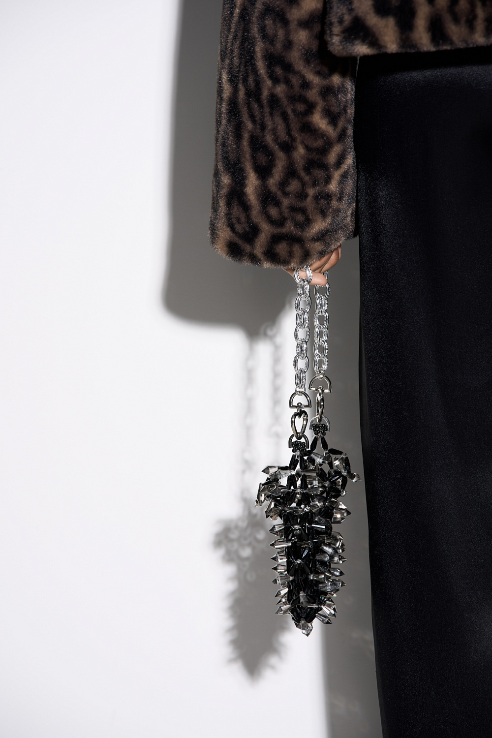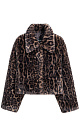 Short fur coat made of eco-fur with an animal print imitating the color of a leopard. Straight cut model with turn-down collar and pockets. Fastening with hidden buttons under the placket. The bottom of the product is made on a drawstring.