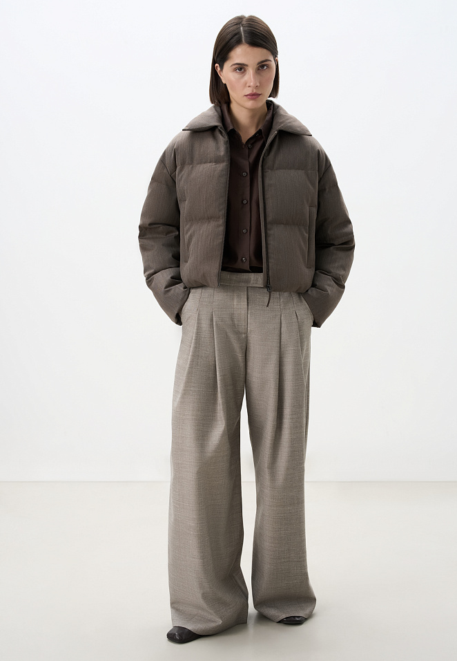 Down jacket with a wool collar