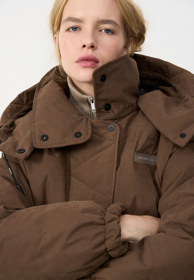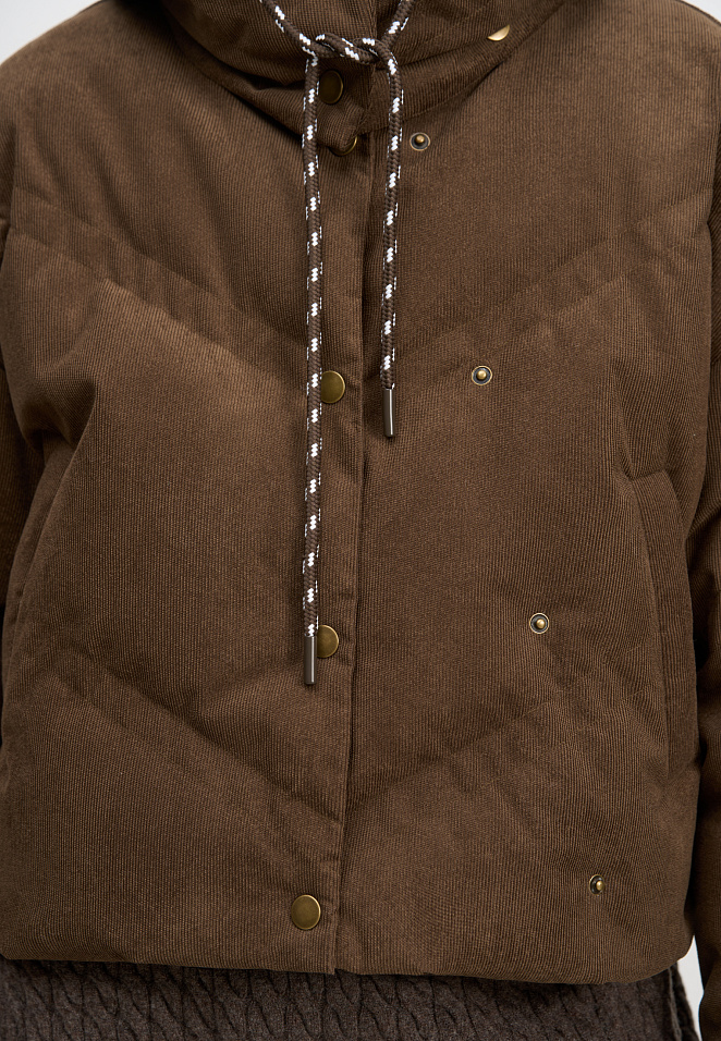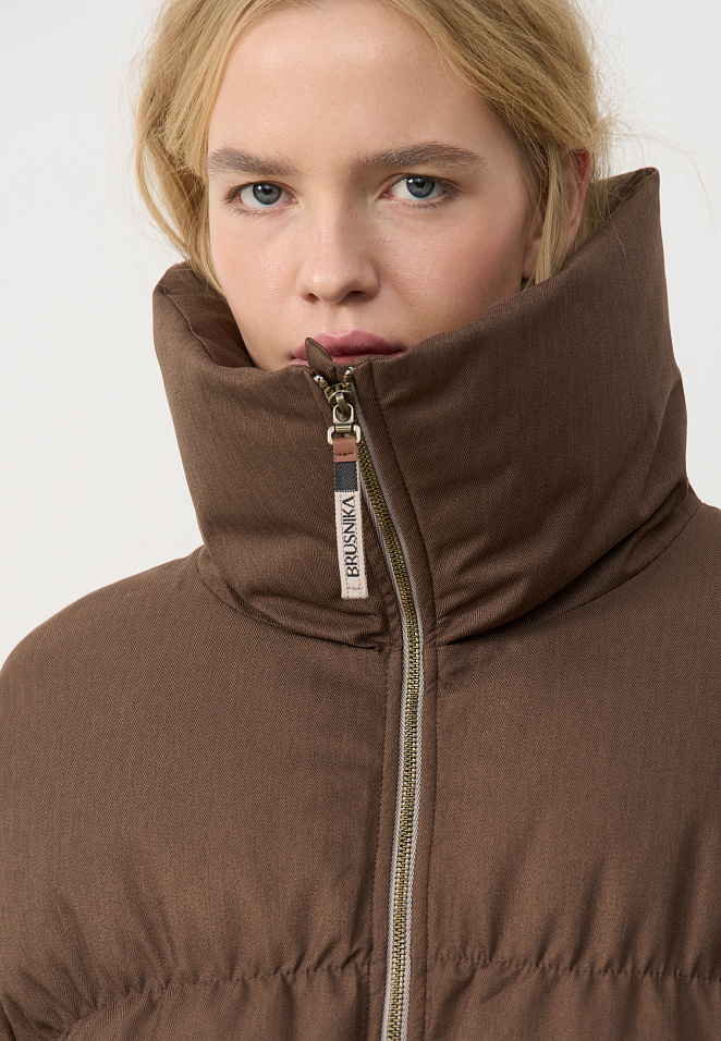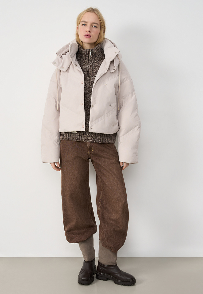 Down jacket with a stand-up collar and zippered hood