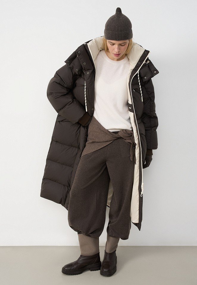 Hooded down jacket with knitted cuffs