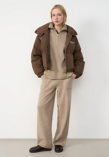 Hooded down jacket with knitted cuffs