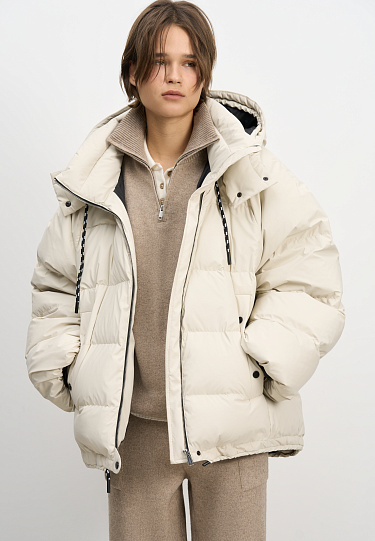 Down jacket with a stand-up collar and zippered hood