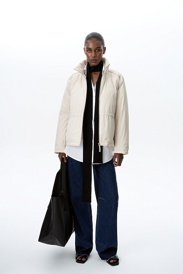 Down jacket with drawstring