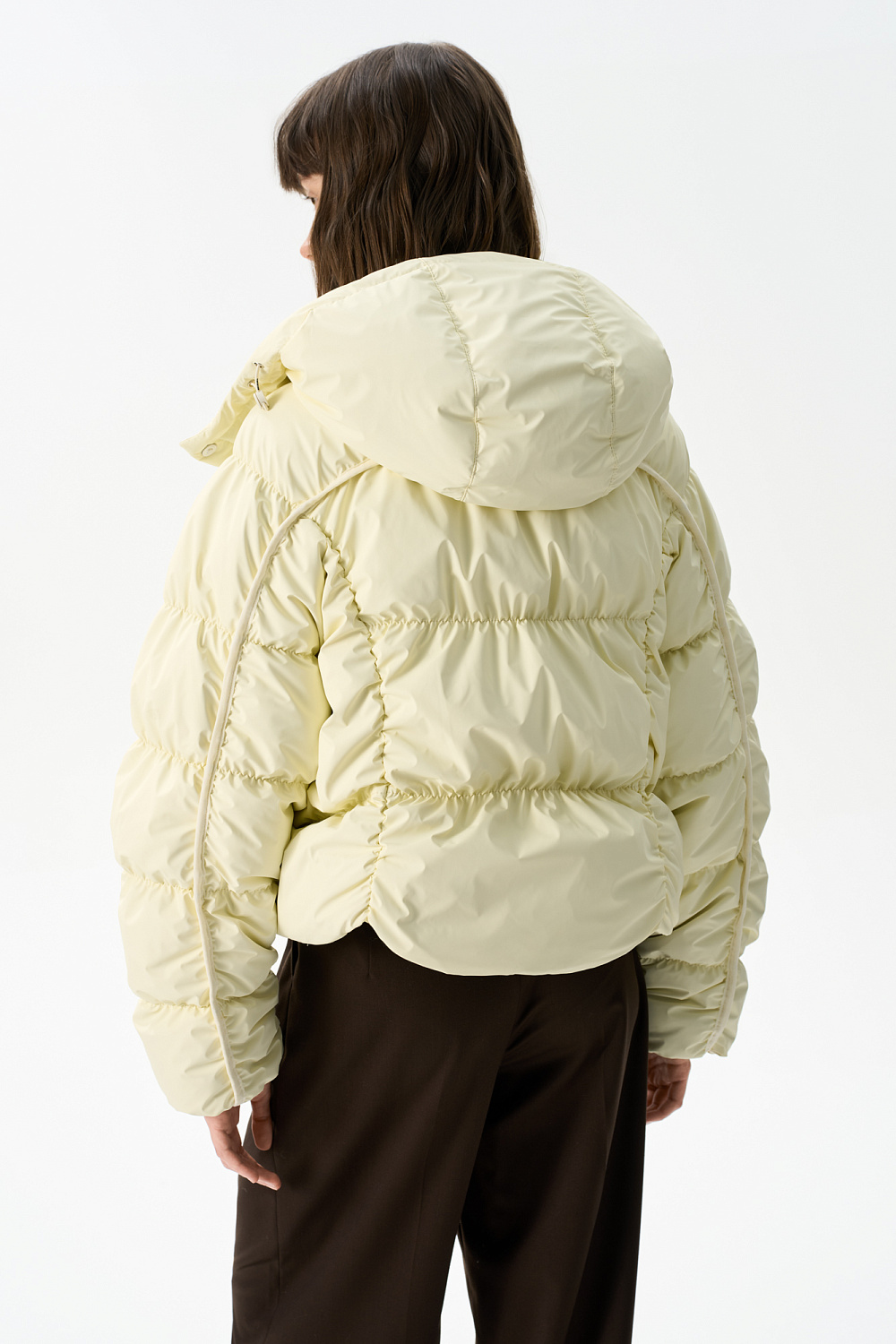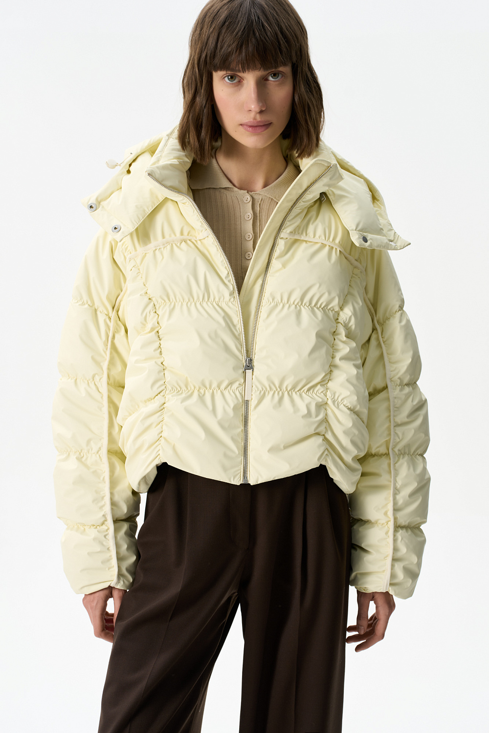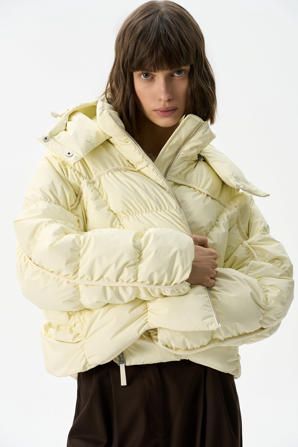 Composition: Upper: 54% polyurethane, 46% polyester, Filler: 90% down, 10% feather