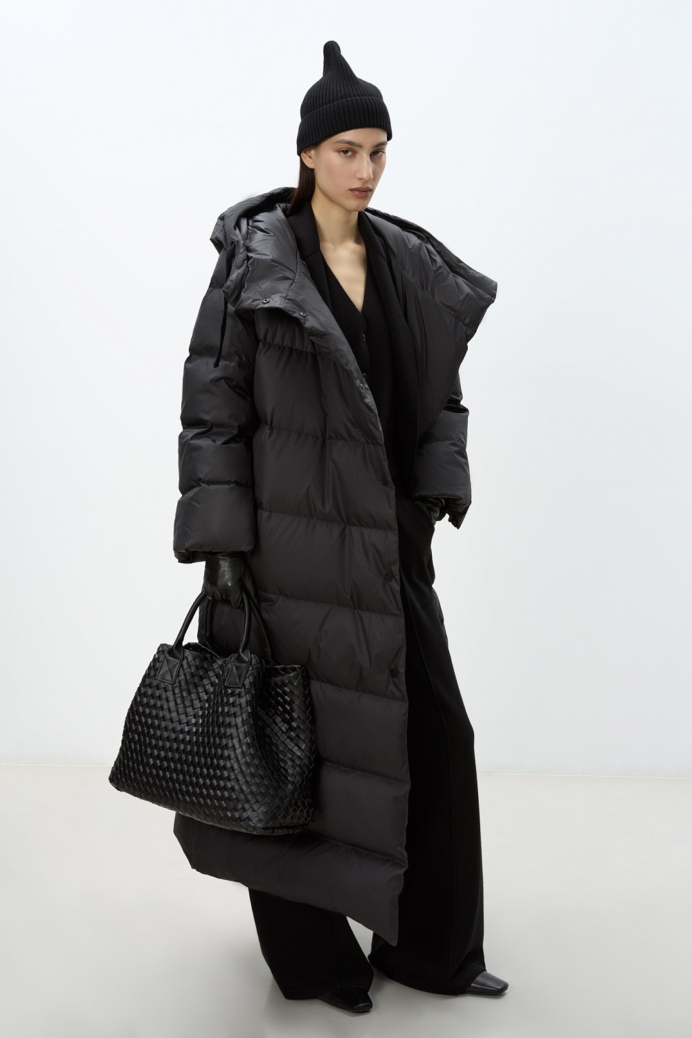 One of the longest and warmest down jackets in the collection will allow you to wear your favorite things even in cold weather. Thick raincoat fabric protects from the wind, and selected down filling protects heat. Self-belt included. Average water resistance, can be worn in dry weather or drizzling rain.