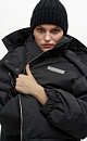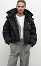 Insulated down jacket with a stand-up collar and zippered hood. Relaxed silhouette, side pockets and a dropped shoulders. Concealed zipper and snap button closure. Filling: natural down 90% feather 10%.