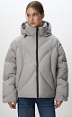 Down jacket with adjustable drawstring at the edges. Loose silhouette model with a stand-up collar, hood and elasticated cuffs. The hood and bottom of the product have a drawstring. Lined. Zip closure.