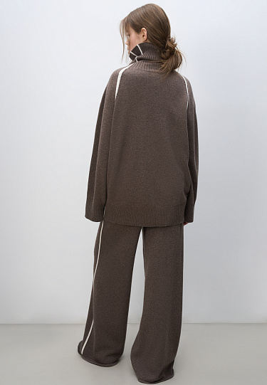 Quilted oversized down jacket. The model has a loose silhouette, with a stand-up collar, a drawstring at the waist and a brand logo on the back. Zip closure.
