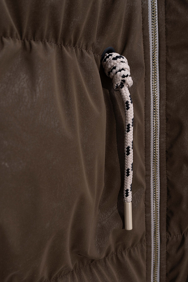 Voluminous down jacket with suede effect