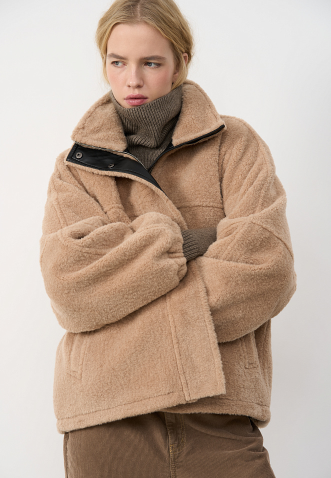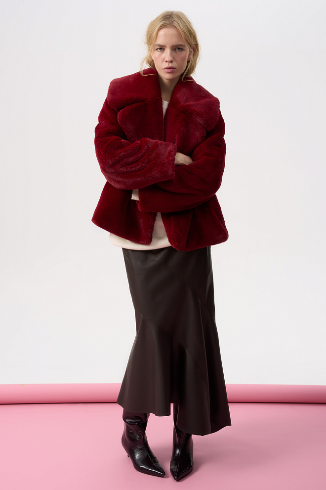 Eco-fur coat with a stand collar