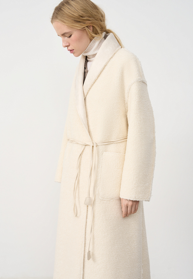 Eco-fur coat with a thin belt