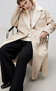Straight-cut faux fur wrap coat with a belt and patch pockets