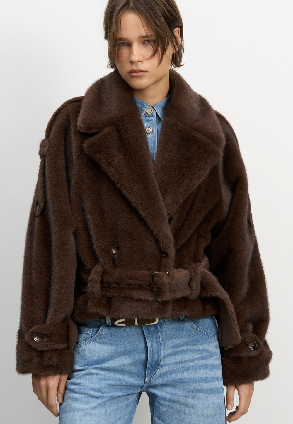 Short fur coat with belt