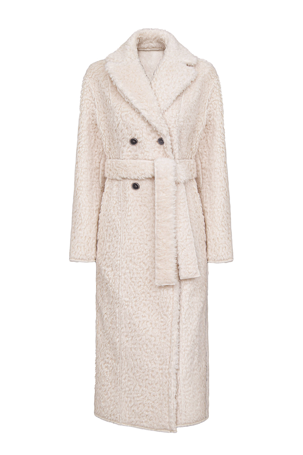 Reversible wool coat. Loose-fit silhouette with turn-down collar and button closure. Belt included.