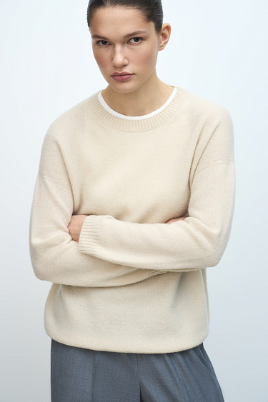 Reversible wool coat. Loose-fit model with turn-down collar and patch pockets. Button closure.