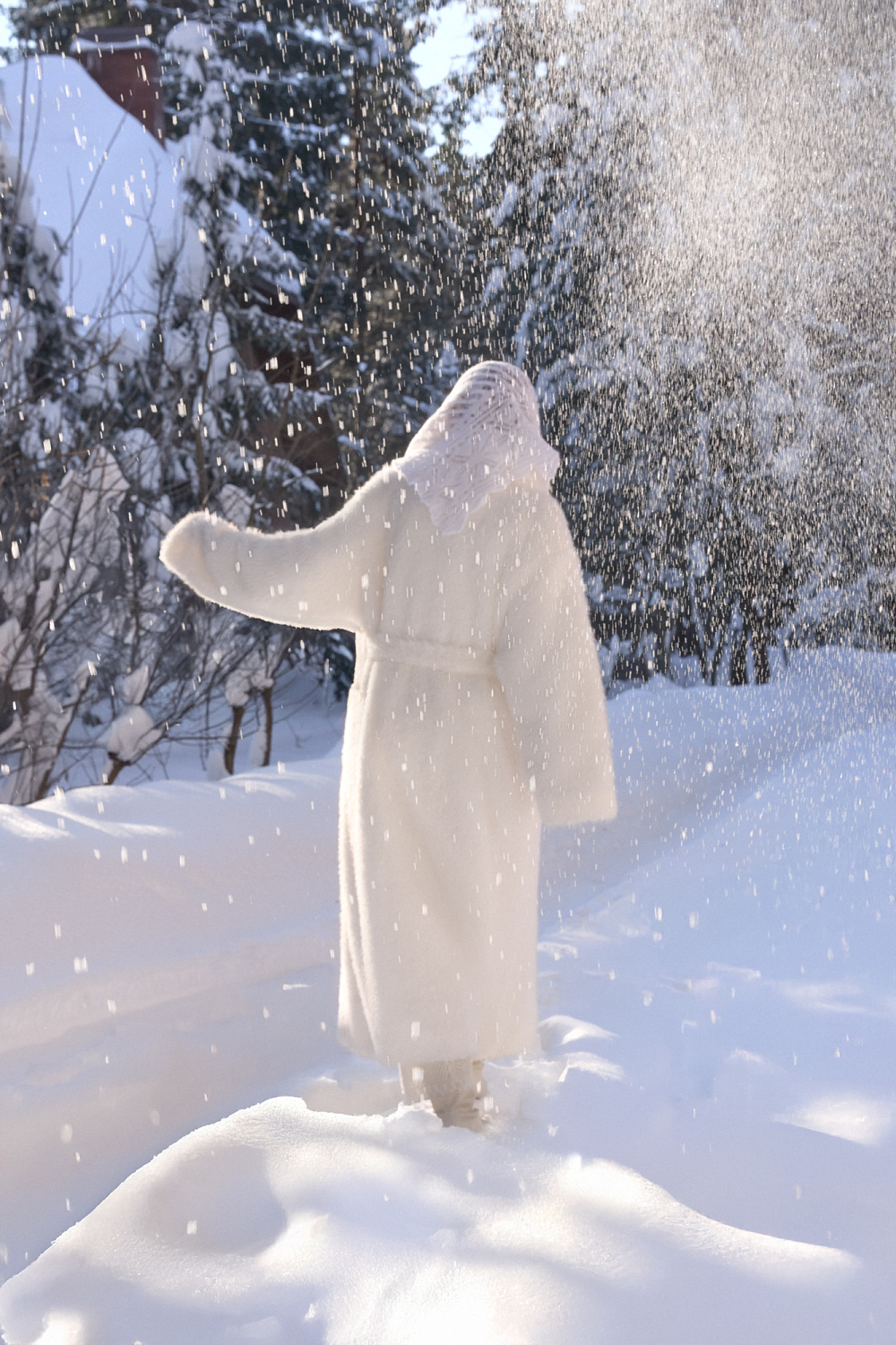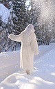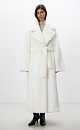 Long insulated faux fur coat. Model of a straight silhouette with an English collar, side pockets and a belt made of basic material. The product is lined.