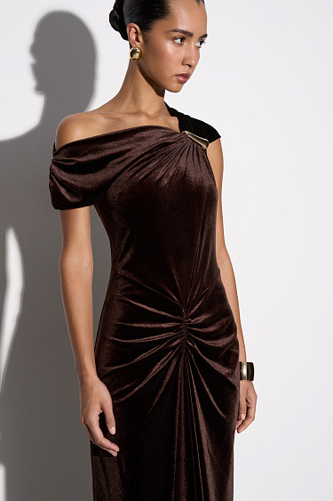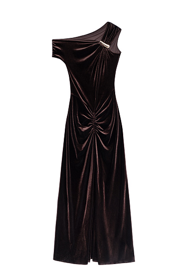 Long fur coat made of eco-fur with an animal print imitating the color of a leopard. Straight cut model with a wide turn-down collar and belt loops. Thin eco-leather belt included.