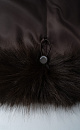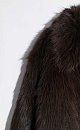 Short fur coat made of eco-fur. Straight cut model with turn-down collar and slit pockets. Fastening with two hidden fur coat hooks. The bottom of the product is made on a drawstring.