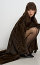 Long fur coat made of eco-fur with an animal print imitating the color of a leopard. Straight cut model with a wide turn-down collar and belt loops. Thin eco-leather belt included.