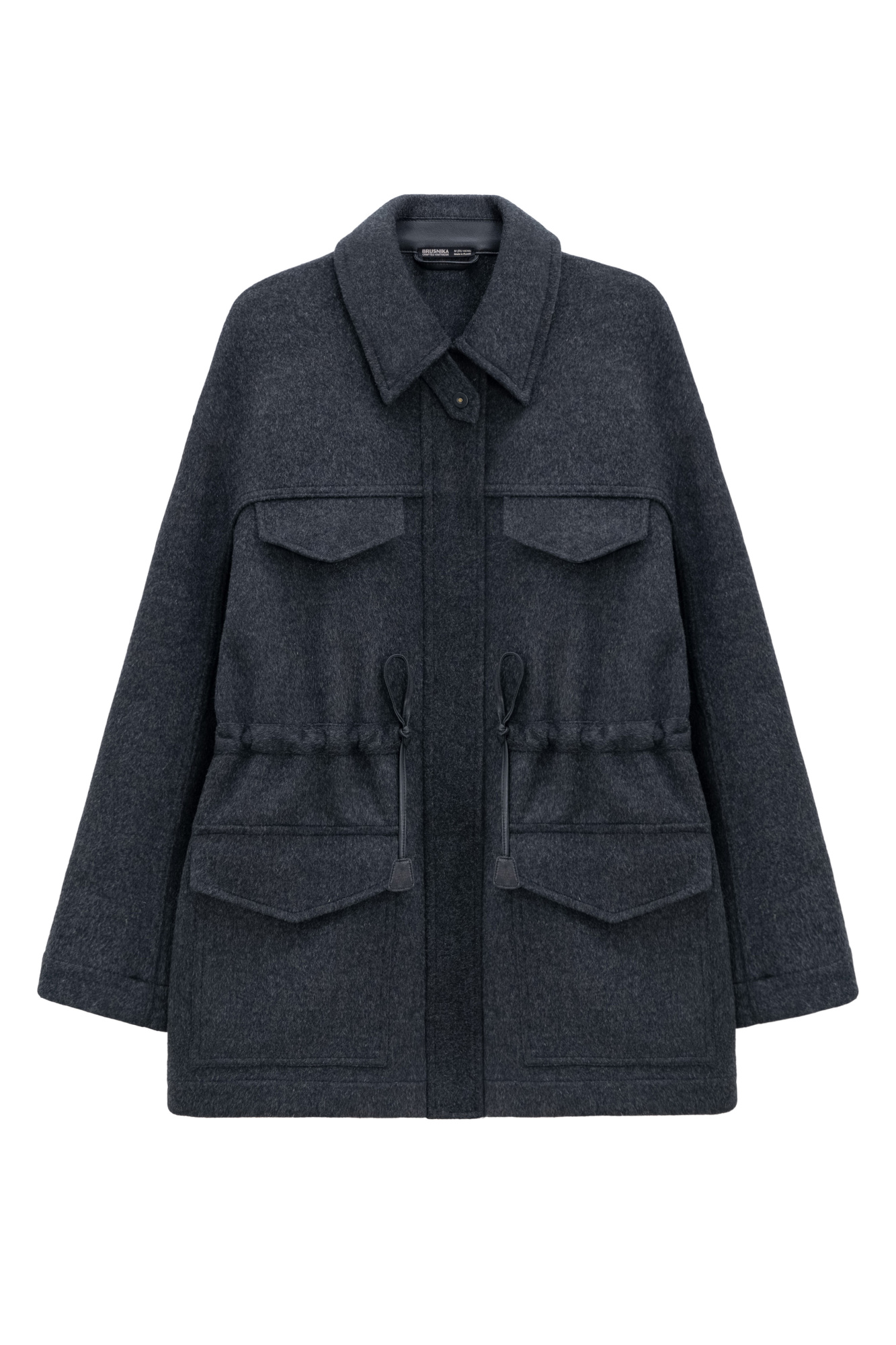 Jacket made of 100% wool. A loose-fitting model with a dropped shoulder line, an adjustable drawstring at the waist, and a turn-down collar with a pata. The product has patch pockets. It is fastened with a zipper and magnetic buttons under the placket.
