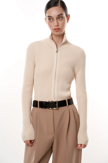 Quilted straight-fit puffer jacket with patch pockets and an elastic belt with buckle.