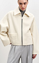 Wool blend jacket with dropped shoulders and patch pockets. Zip closure. Lined.