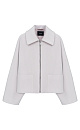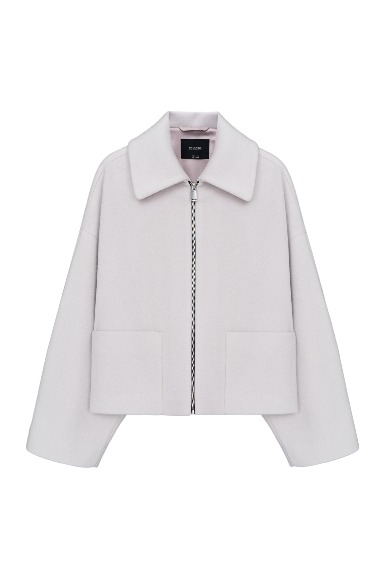 Wool blend jacket with dropped shoulders and patch pockets. Zip closure. Lined.