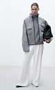 Wool jacket with raglan sleeves. The model has a loose silhouette with patch pockets on the chest and a one-piece stand-up collar. Zip closure. The product is lined.