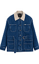 100% cotton denim jacket with corduroy collar. The model has a loose silhouette with dropped shoulders, patch pockets and a belt. Button closure. The product is lined.