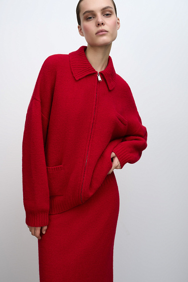 Jacket made of 100% wool. A loose-fitting model with a dropped shoulder line, an adjustable drawstring at the waist, and a turn-down collar with a pata. The product has patch pockets. It is fastened with a zipper and magnetic buttons under the placket.