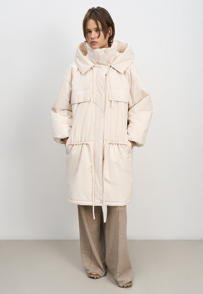 Long jacket with drawstring
