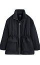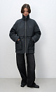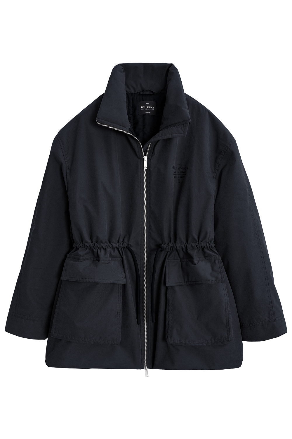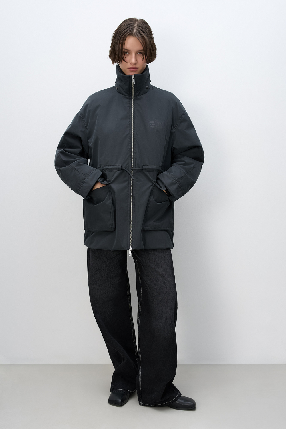 Parka with sintepon. A loose-fitting model with an adjustable drawstring at the waist, large patch pockets with flaps, a dropped shoulder line, and a stand collar. The jacket comes with an additional voluminous collar and hood. It is fastened with a zipper. The product is lined.