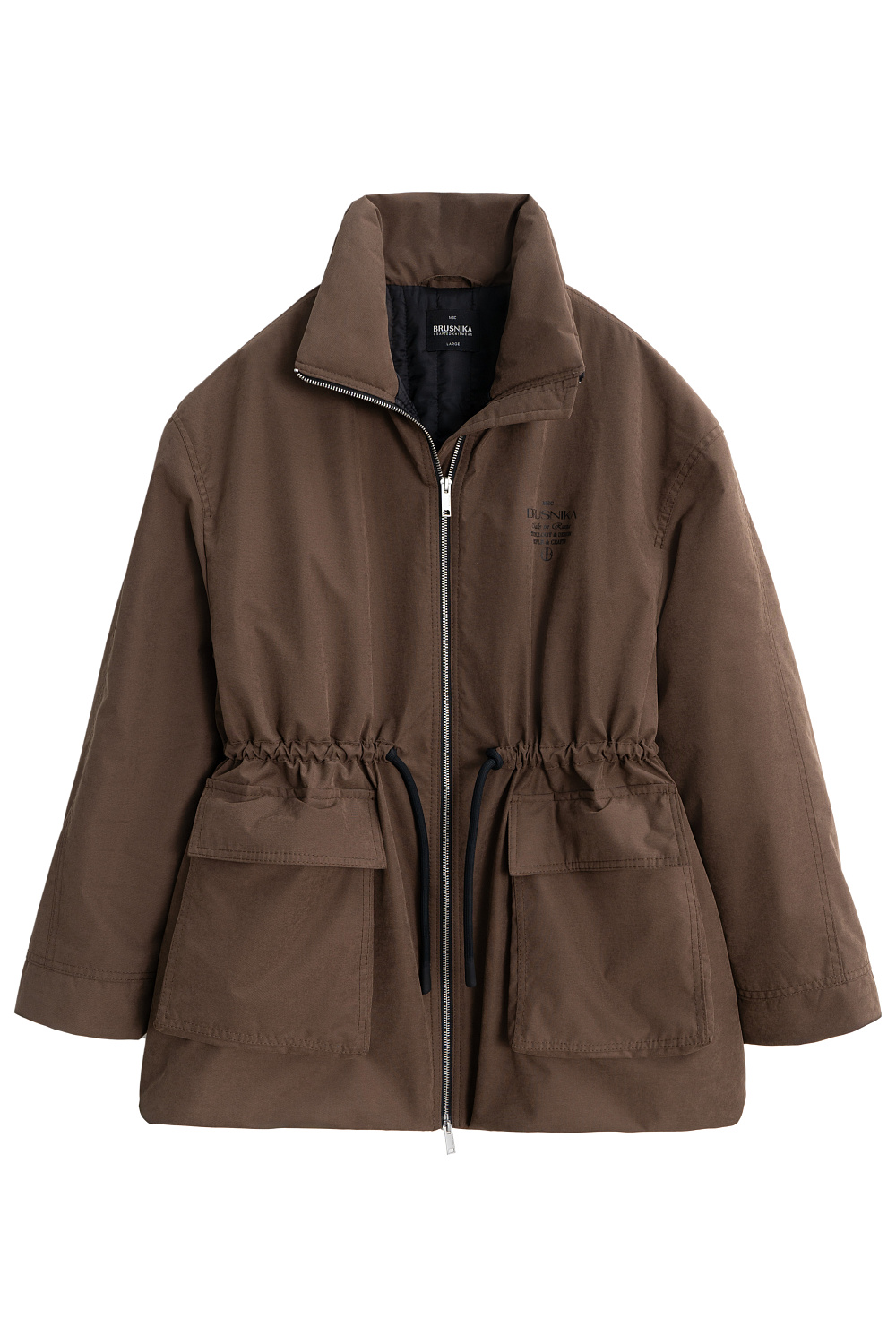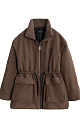 Parka with sintepon. A loose-fitting model with an adjustable drawstring at the waist, large patch pockets with flaps, a dropped shoulder line, and a stand collar. The jacket comes with an additional voluminous collar and hood. It is fastened with a zipper. The product is lined.