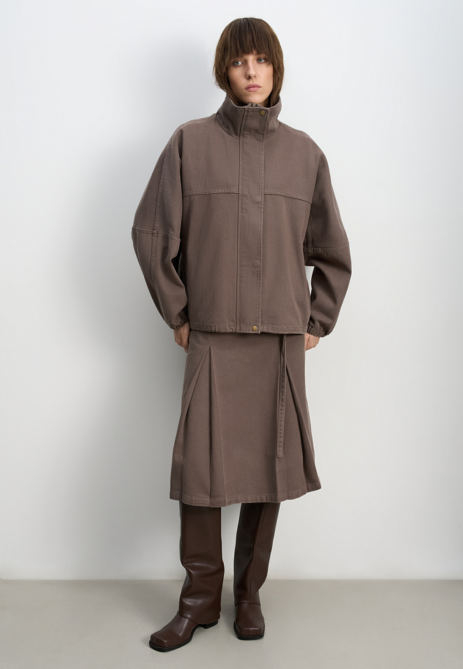 Denim jacket with a stand-up collar