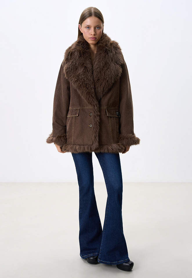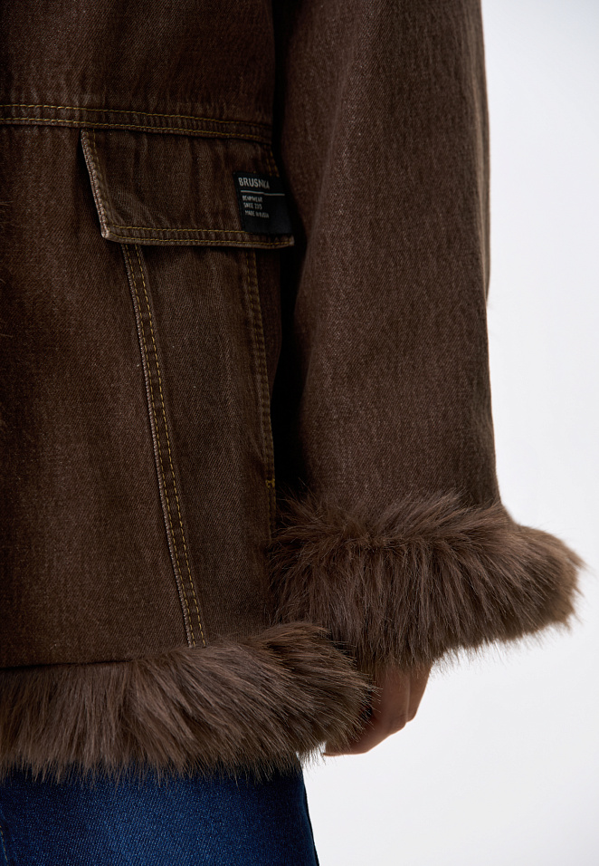 Denim jacket with faux fur trim