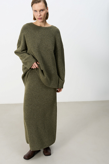 Eco-leather jacket with a belt. Loose silhouette model with dropped shoulders and side pockets. The product is decorated with metal buttons and zippers. Lined.