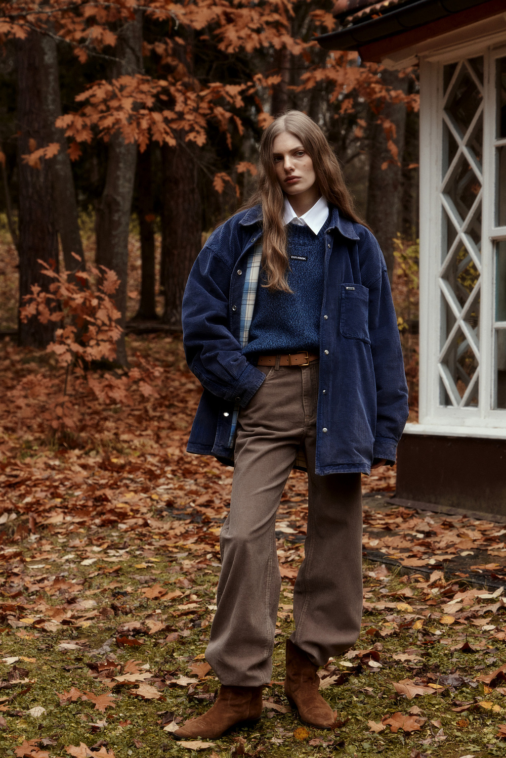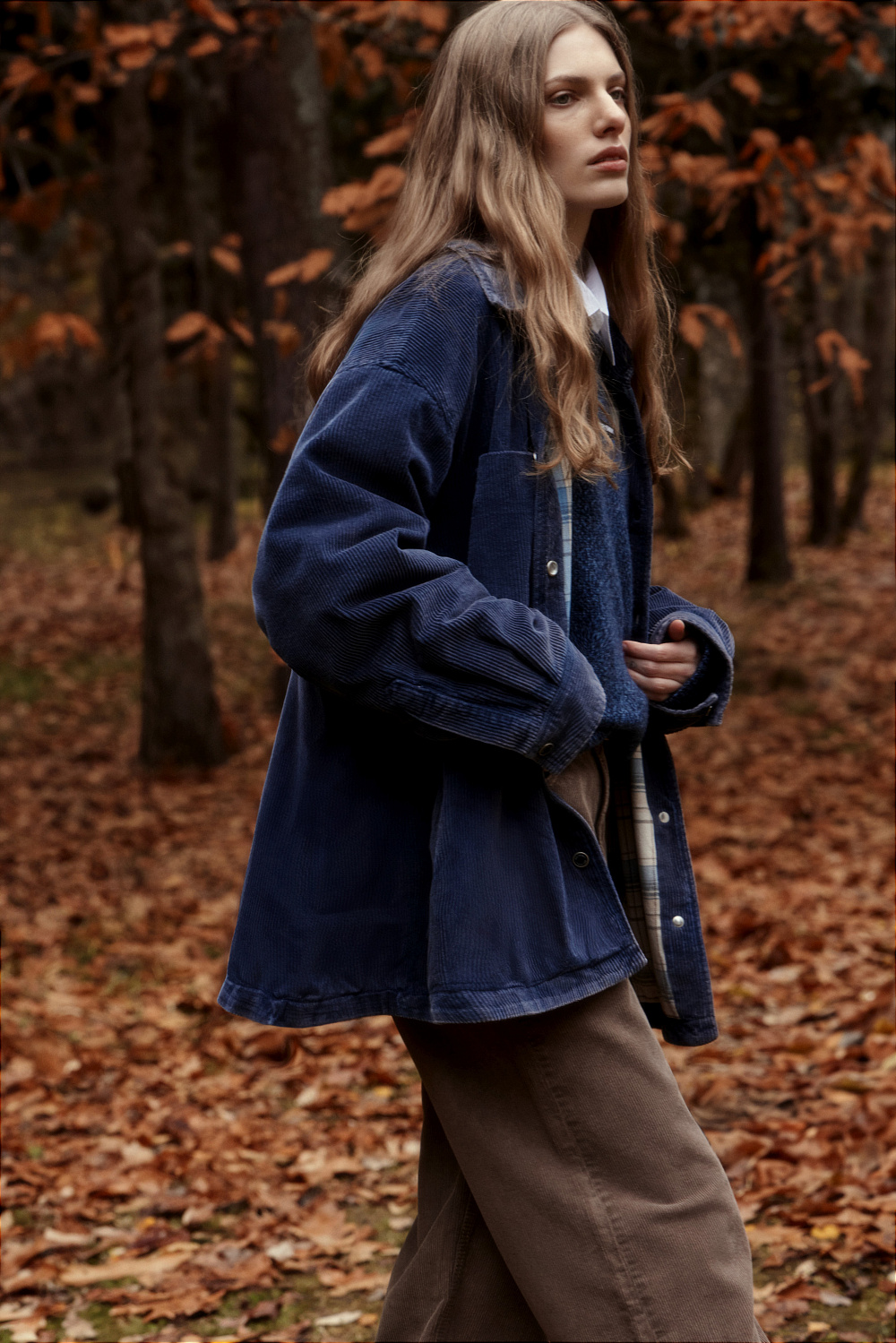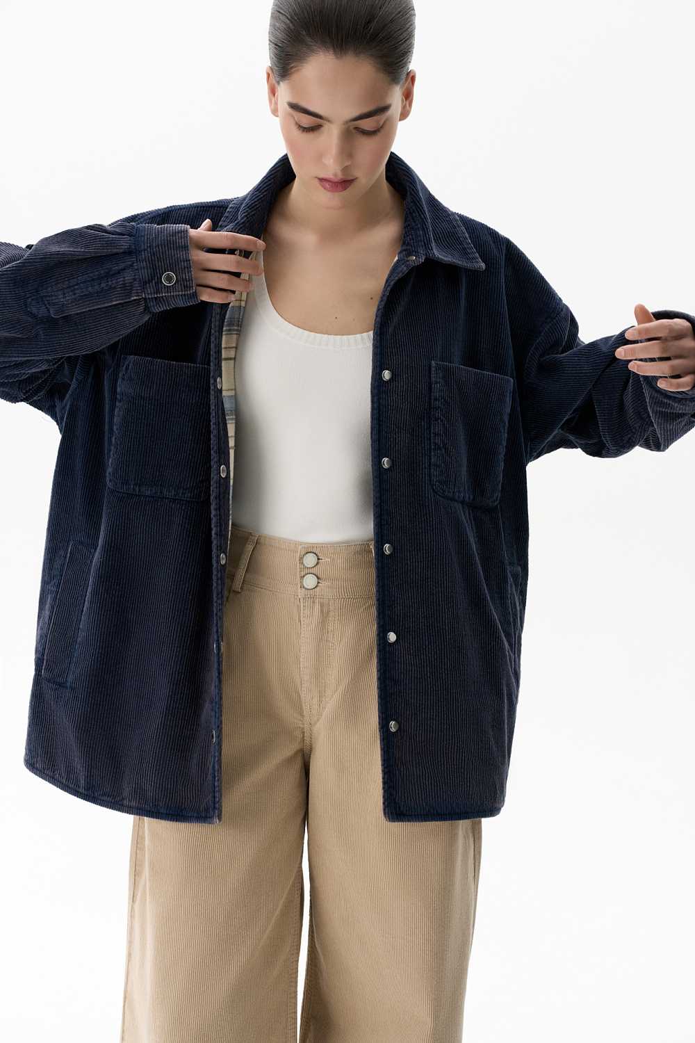 Cotton corduroy jacket. Straight-fit model with a turn-down collar, two patch pockets on the chest, two welt pockets and a button closure. The product is lined.