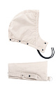 Reversible down jacket. Loose silhouette model with an adjustable drawstring at the waist, large patch pockets with flaps and a stand-up collar. The jacket comes with an additional voluminous collar and hood. Zip closure.