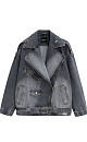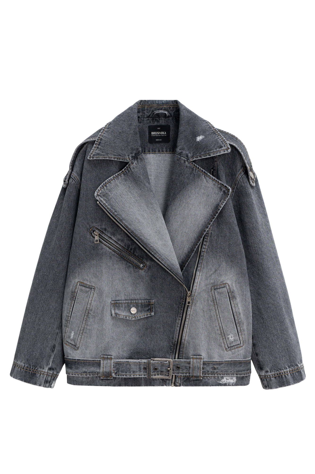 Loose-fit denim biker jacket. Dropped shoulders and diagonal zip closure. Side pockets, zipped cuffs.