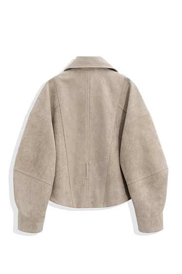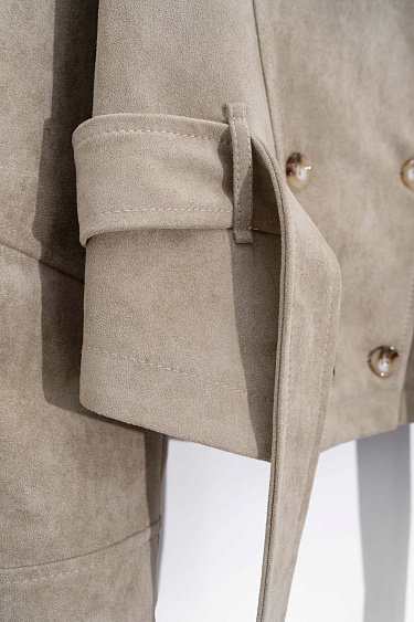 Double-breasted short suede trench coat