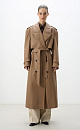 Double-breasted eco-leather trench coat. Straight silhouette model with a classic English collar and yoke. The sleeves are decorated with straps at the cuffs and large buttons. Two pockets. Belt loops at the waist.