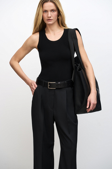 Double-breasted oversize wrap denim trench coat without lining. Asymmetrical yoke, turn-down collar and wide belt made of basic material. Front side pockets with buttons.