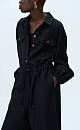100% linen jumpsuit with patch pockets on the chest and long sleeves. Front button closure.