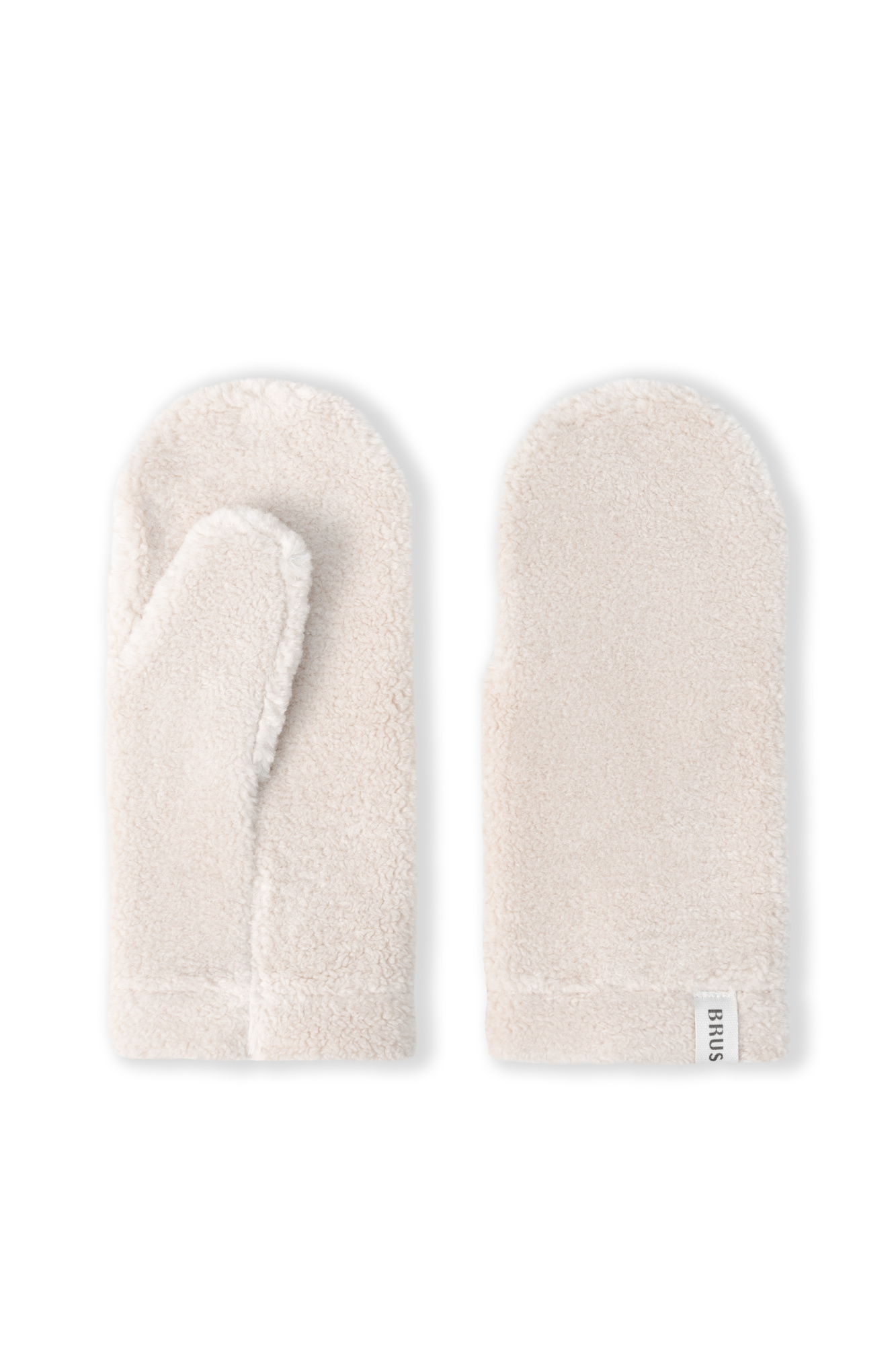 Warm faux fur mittens with a branded label