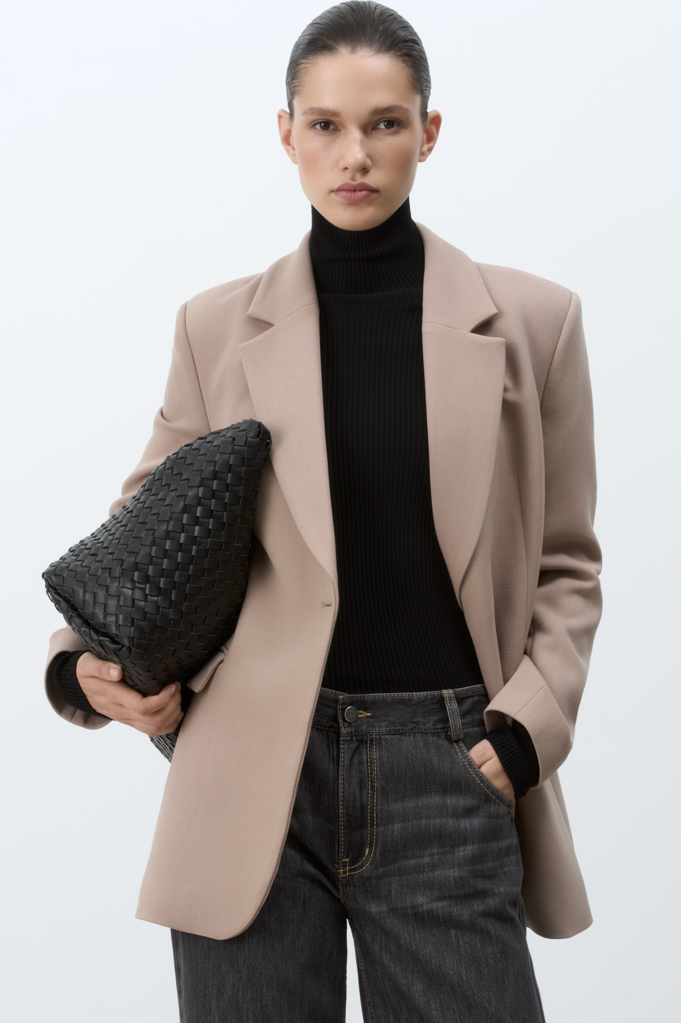 Single-breasted blazer made of polyviscose fabric, fitted silhouette, pockets and button closure.