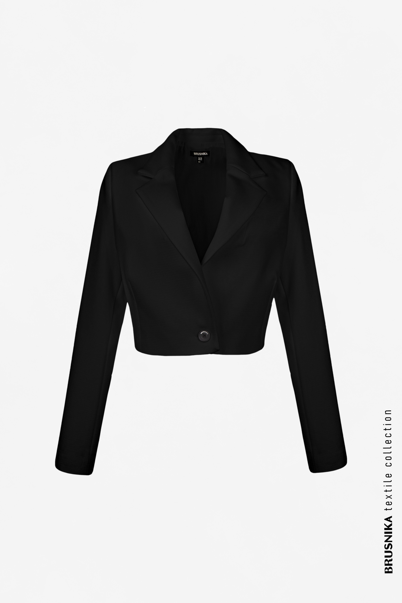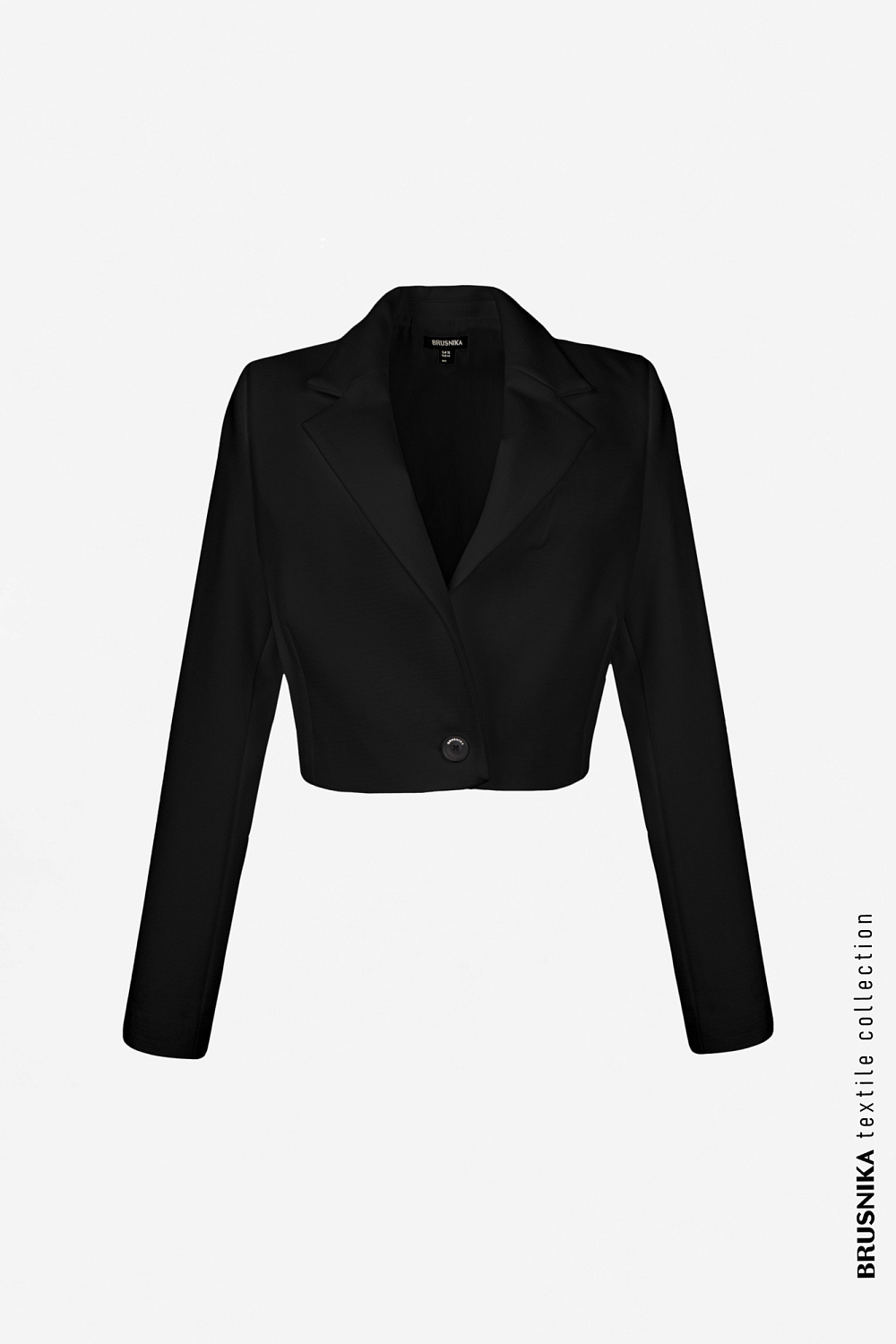 Cropped double-breasted blazer with button.