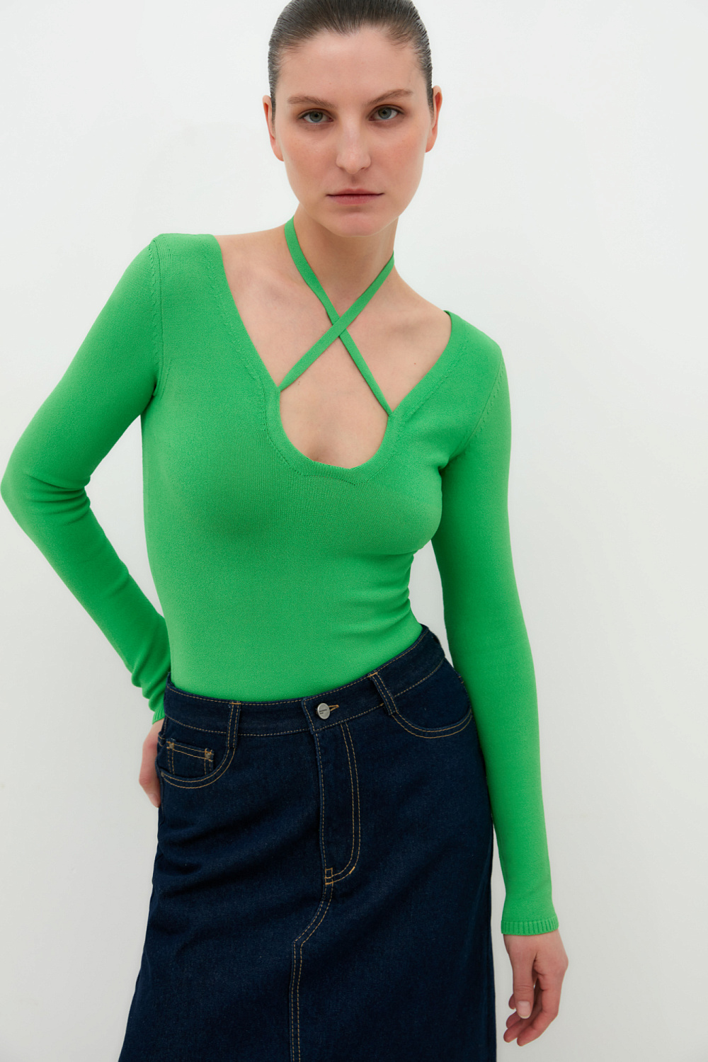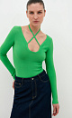 Viscose bodysuit with cut-out and ribbon tie.