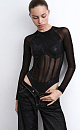 Bodysuit made of elastic supplex and transparent mesh. Tight seams imitate corset boning, which emphasizes the silhouette. Concealed front zip fastening.
